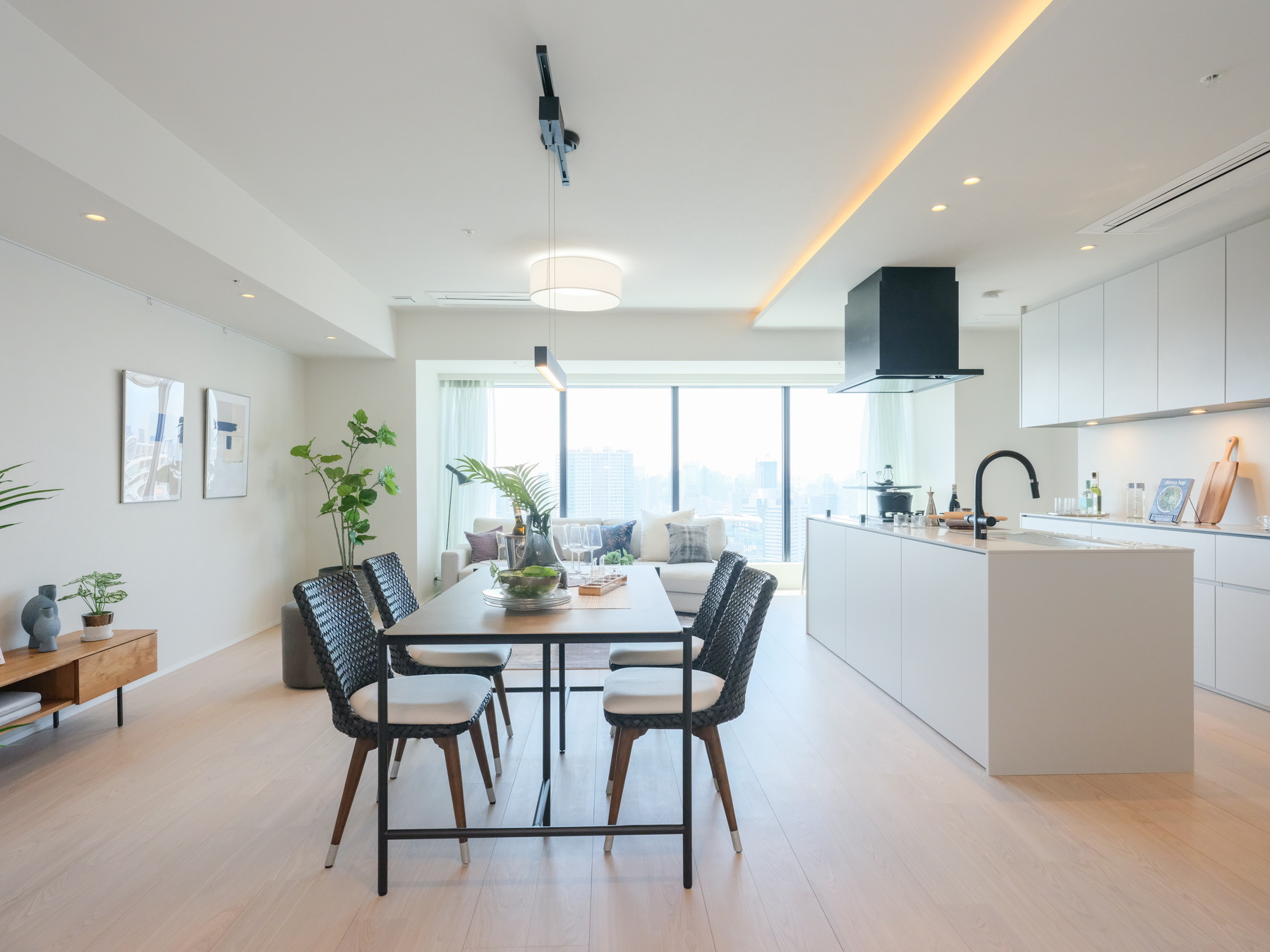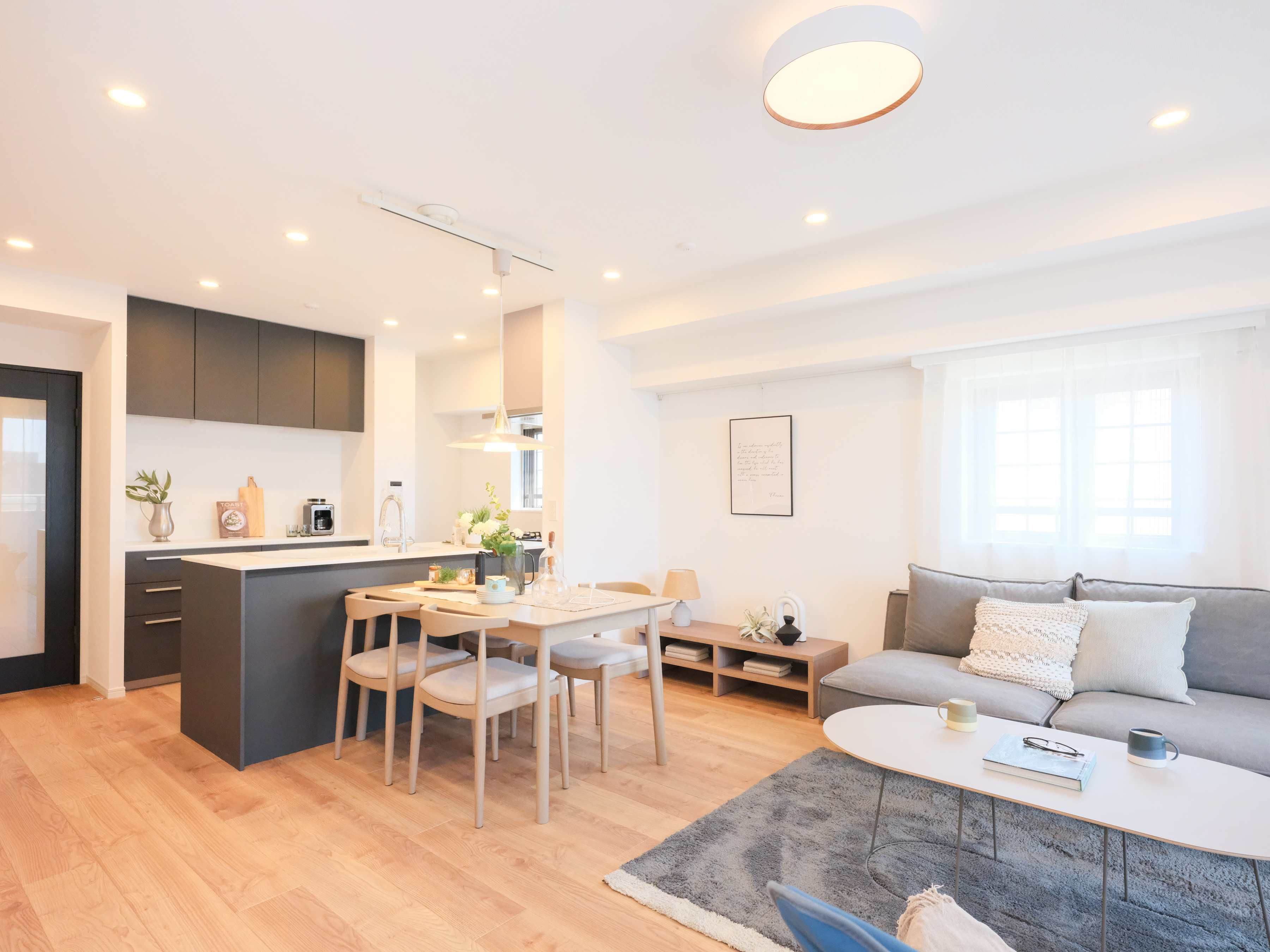 combining Scandinavian and Korean interiors.北欧と韓国インテリアをドッキング、広いリビングのある家