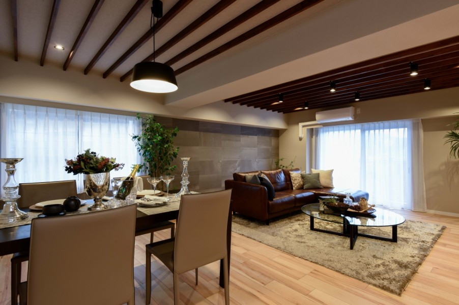 - 1大きなリビングに濃い色の梁がインパクトを出す17.6帖のひろいリビングに濃い色の梁が特徴の物件です。