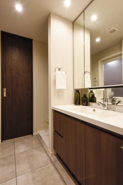 再開発エリアにも近く今後も楽しみです。 - 3タイルをあしらったホール玄関ホールと洗面室、トイレはタイルをあしらいました。