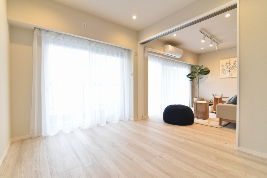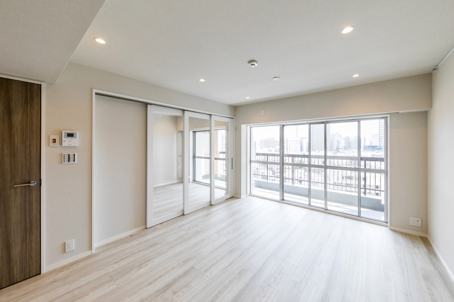 - 3バルコニー側サッシカバー工法にてペアガラスに交換外界からの遮音性と断熱性を高めるインナーサッシ、ぺガラスサッシを導入し通勤アクセスの良い都会にいながら静かに暮らすという贅沢を叶えました。