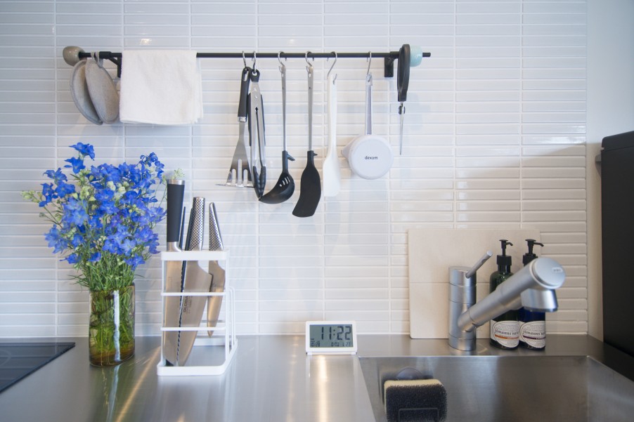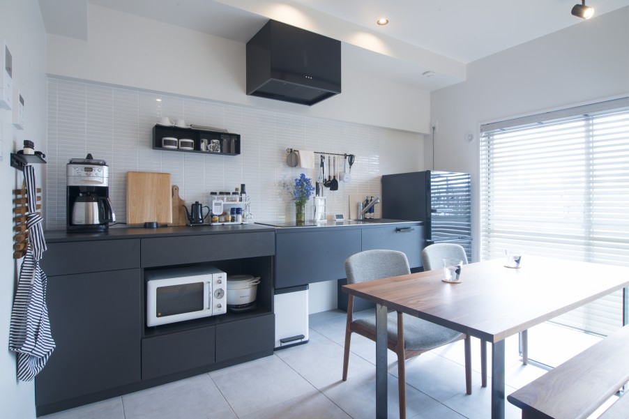 キッチンの壁側にもキッチンと同色の棚を造作することで、食器やキッチン器具等を収納する箇所をつくり、統一感を出しながらすっきりとした空間を作りました。 - 3不動産のプロが選び抜いた立地条件三軒茶屋駅徒歩圏で通りとは逆を向いている為音も気になることはなく、南向きで眺望日当りは良好。