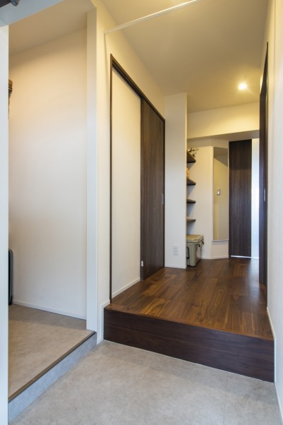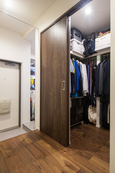 また、家具は置きたくないとの要望で、ウォークインクローゼットを始め、キッチンの棚など、作り付けの収納をたっぷり設けたこと、ベビーカーをすぐに収納できる玄関横のシューズインクローゼットも、マストなアイテムだったそうです。