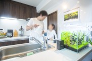 引っ越してから、ご主人は念願だった小さなアクアリウムをキッチンに置き、美しい熱帯魚や水中生物、ゆらゆらと揺れる水草を鑑賞して、癒されているといいます。
