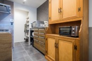 もう1つ印象的だったのが、キッチンにあった食器棚です。すでに故人となられた奥様のお父様が結婚のお祝いに手作りされたもので、家具製作に関してはまったくの素人だったそうですが、奥様のイメージ通りの食器棚を作り上げたとのことです。「これだけはずっと一緒ですね。部屋の中に運び入れるのに苦労したことも多かったのですが、今回はギリギリ、ドアから入りました(笑) ずっと見守ってもらっている感じですね」という施主様のお話に、胸が熱くなりました。