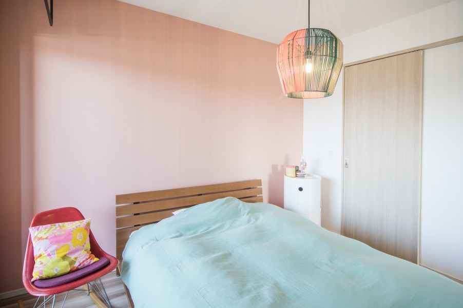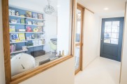 奥様の寝室はダスティーピンクでやさしい印象、ご主人の寝室は和のテイストを取り入れた壁紙、仕事部屋はブルーグレーと、ディスプレイされている雑貨たちにもよく似合うチョイスがなされていました。どこを見てもセンスの良さを感じさせてくれるお洒落な空間が広がっています。