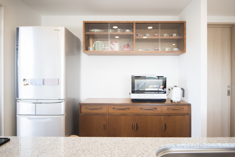 家具に合わせて、キッチンにはカップボードを設置。ずっと昔から使っていた家具たちとの調和は素晴らしく、ずっと昔からお持ちのものを取り付けたかのようなバランスの良さを感じさせてくれました。