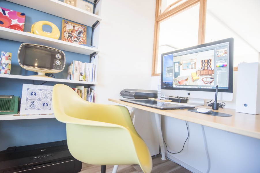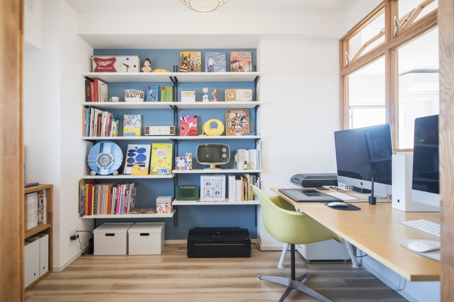 お気に入りの家具に囲まれて、たっぷり太陽の光が差し込んでくるお部屋。心地良い空間で、ご主人はさらに素敵なイラストを描き上げてくれそうです。