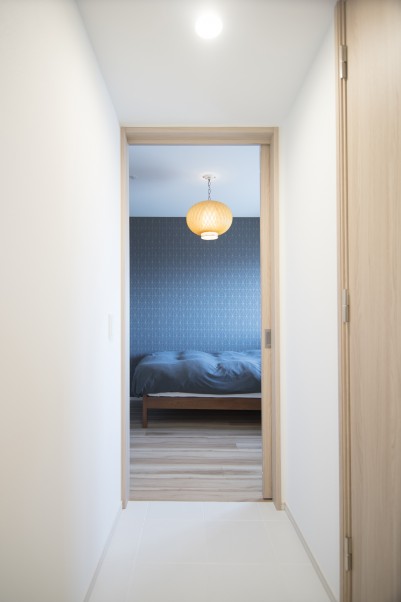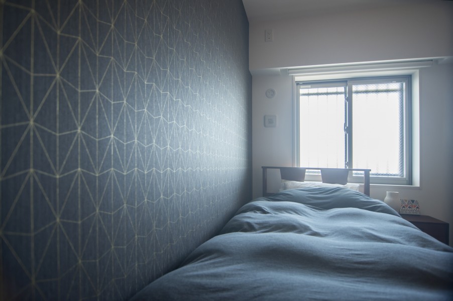 全体の間取りは大きく変更していませんが、壁紙やドアなど、ディテールや素材もこだわりを持って選ばれています。また各部屋の壁紙は一面だけ、好きな色を取り入れたアクセントクロスを採用。