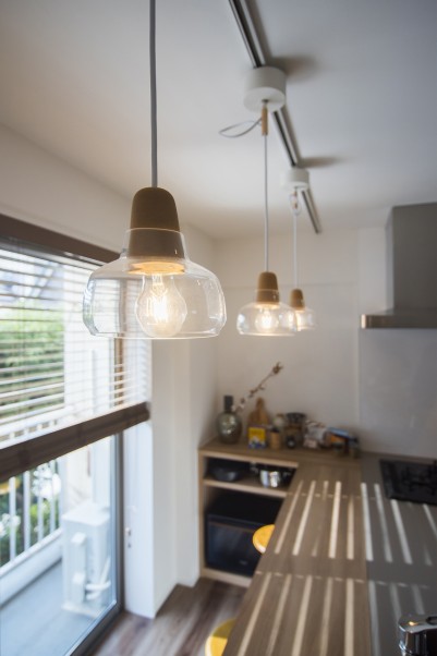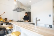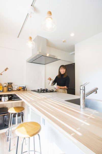 「キッチンですね。最後まで向きを悩んだんですが、ベランダに向くようにしてもらって、広めのカウンターテーブルをつけてもらいました。