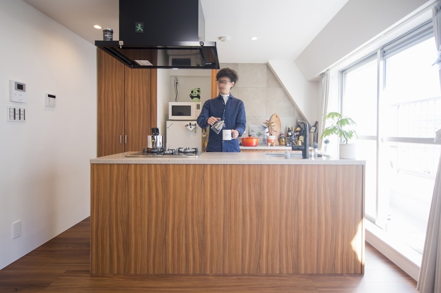 「お気に入りの場所はアイランドタイプのキッチンですね。広々として使いやすいですし、週末は自分で料理も作ります。