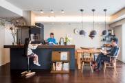 広くて機能的なキッチンは使いやすく、7歳のご長女も自分で料理を作るそうです。 - 3子供たちの成長に合わせて再リノベーションにも対応可能家族5人が一緒に寝ることができるよう寝室の壁面を大きくして、ベッドをつなげて置いています。