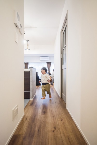 ご長男は取材中も、走り回ったり、おもちゃで遊んだり、元気いっぱい。1階住戸なので、階下を気にすることないというのも魅力の一つです。