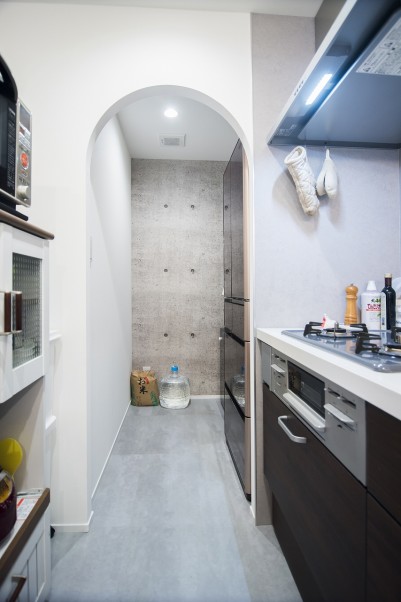 「パントリーとシューズクローゼットの入り口のアーチです。インスタで見て、可愛いと思っていたので、最初にお願いしたところです」(奥様)