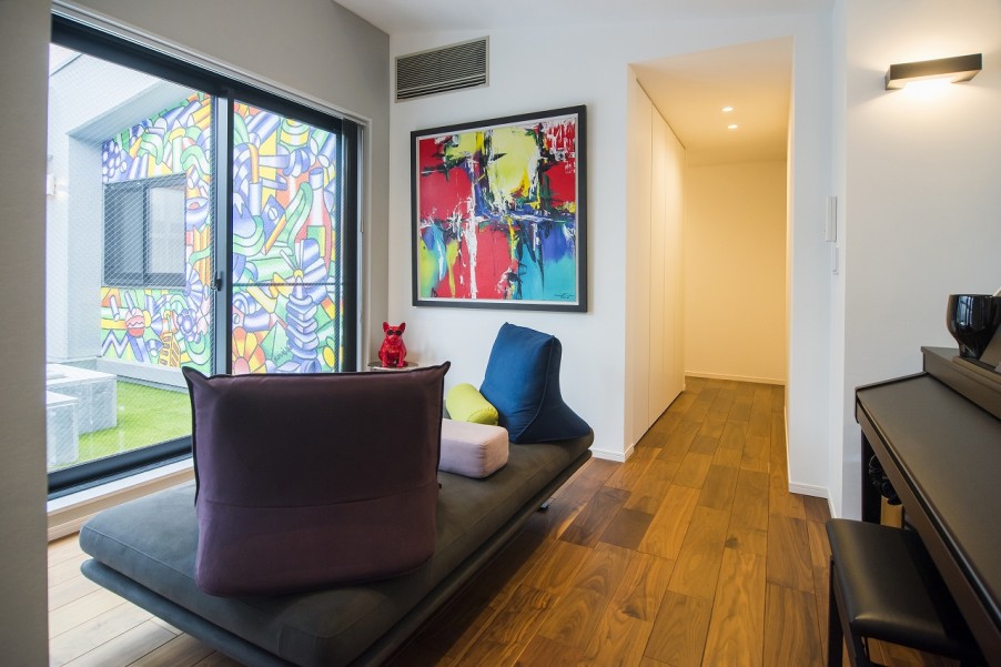 「施工会社さんも、最初は難色を示しますが、今までやったことがないだけで、出来ないわけではないんです。難しいという言葉を何度も聞きましたが、結局、ほとんど出来ました。もちろん、お金をプラスする必要はありましたが、実際には既存のモノにオプションを上乗せしていくと、高くなってしまうケースもあるので、しっかり見積もってもらうべきだと思います。それと、壁のアートも友人の中には、そこまでする必要はないのでは?という人もいましたが、実際に住む僕たちは、やりたかったので、実施してもらいました。出来上がりを見たら、最初は反対していた人も素敵だねと言ってくれました。住むのは自分たちです。周囲の意見に流されずに、自分たちの好みをカタチにしてください」(A様)