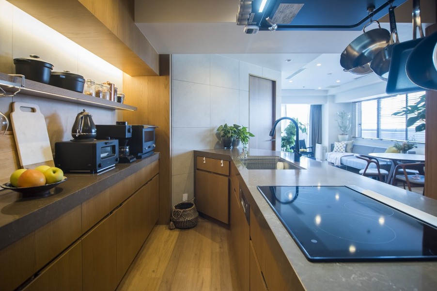 「最初に見たときも広くて使いやすそうと感じましたが、実際に住んでみて、動線がすごく考えられていると感じました。後ろを向いてコーヒーを入れて、朝ごはんをコンロで作って、洗い物も同時に自動で出来て…。すごく合理的で使いやすいです。さらに収納も多くて、以前3LDKに住んでいた時にキッチンにあったものすべてが、このキッチンに収まりました」(A様)
