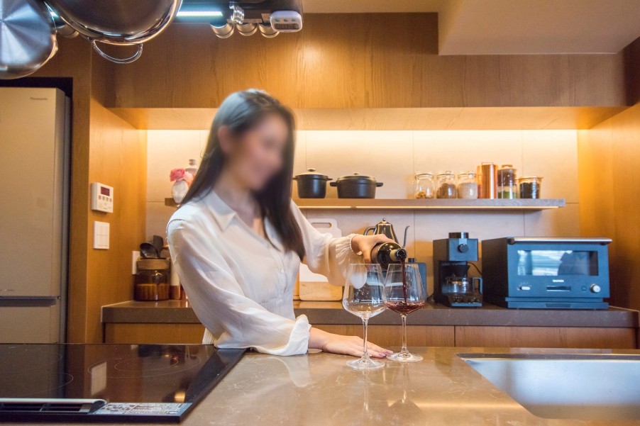 キッチン自体がとても広く、ときどき遊びに来る友人と一緒にキッチンに立つこともあるそうですが、とても楽しい時間を過ごしているといいます。好きなお酒をキッチンのカウンターで飲むこともあると話してくれました。