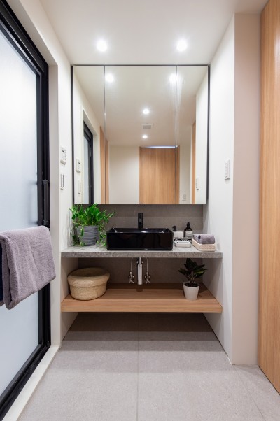 「ユナイテッドアローズ社監修のオリジナルキッチンは導線を考えて作られていると感じます。洗面台も、デザイン性がありながら収納も豊富で、とても実用的です。細部までこだわっていて、とても使いやすくて気に入っています。」(ご主人)