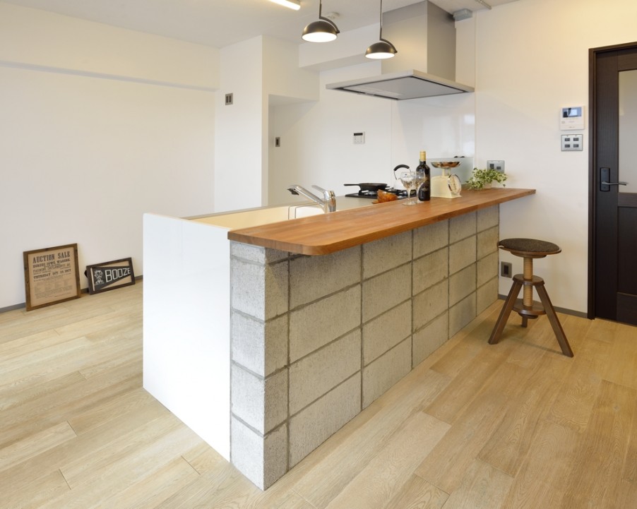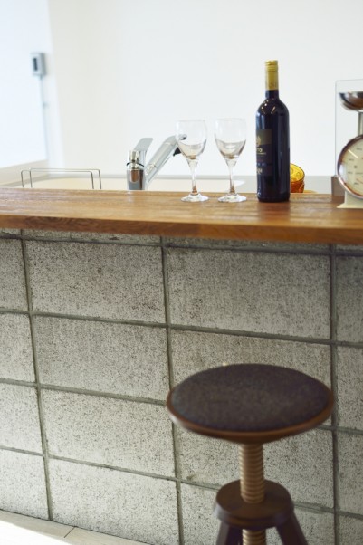 - 3コンクリートブロックで遊び心もキッチンの背面にコンクリートブロックを採用することでアクセントを出しました。