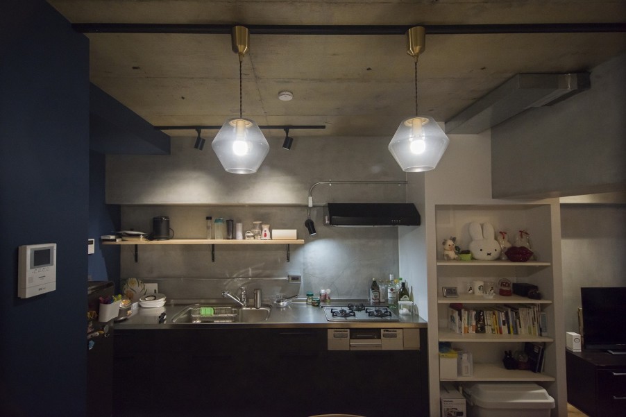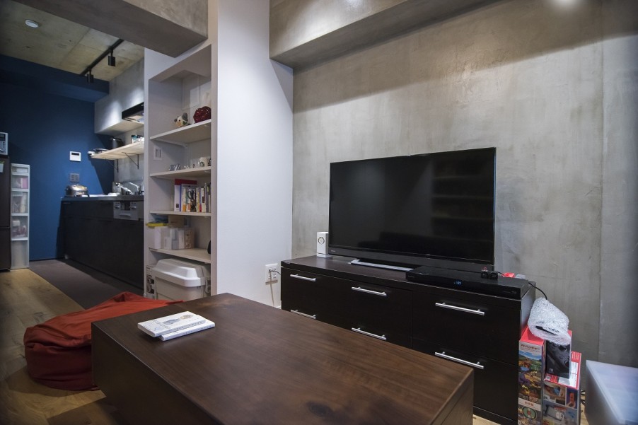 「リノベーションをする前は、リビングの梁に存在感があり二重天井になっていました。天井高を確保するために躯体現しにしましたが、癖の強いインダストリアル系にしてしまうと将来売り出す時に大きく好みが分かれてしまうと思ったので、素材感を活かしつつも普遍的な感じにしました。」(ご主人)