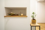 さらに、玄関を入って正面の壁には、鍵の置き場として使えるニッチを造作しています。