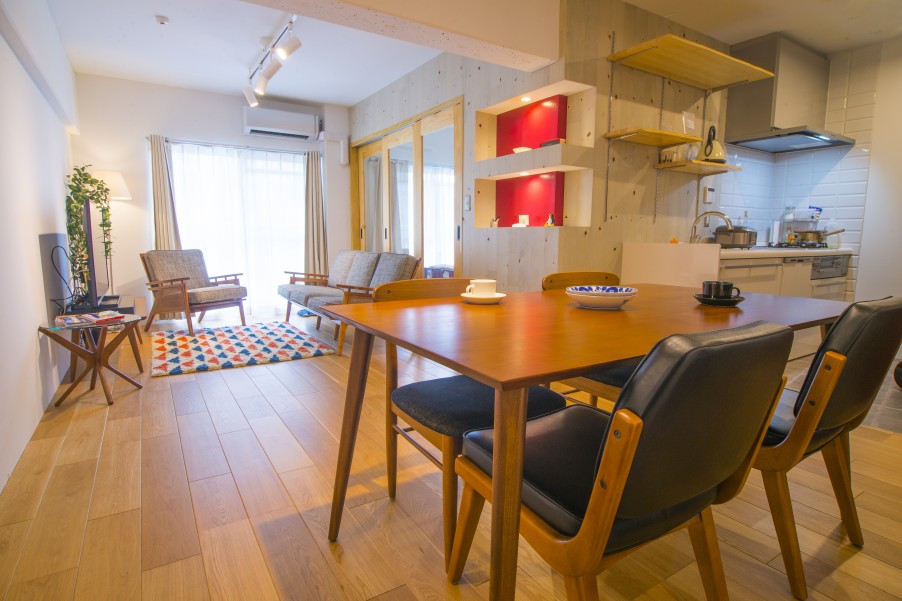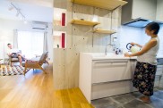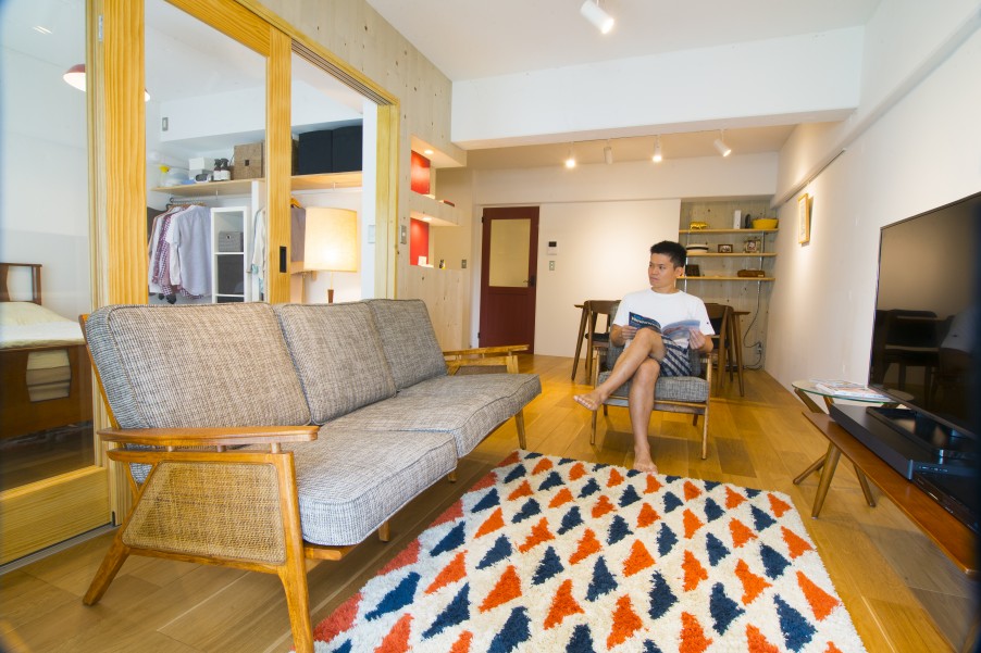 リビングの隣に寝室を設けることにより、無駄なデッドスペースとなる廊下を造らずに空間を有効活用しました。 - 2間取りは土間付きワークスペースのある2LDKで、全体的にゆったり58.42平米という限られた空間を以前は3DKに区切っていました。