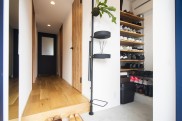 キッチン以外の収納にもこだわり、洋室の隣に大容量のウォークインクローゼットと、廊下にも掃除用具や日用品のストックなどを入れるスペースを確保しました。ウォークインクローゼットは持っていた収納ケースに合わせて幅を設計し、天井の高さまでスペースを有効活用しています。