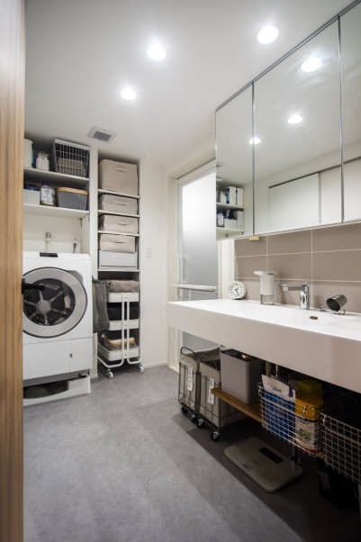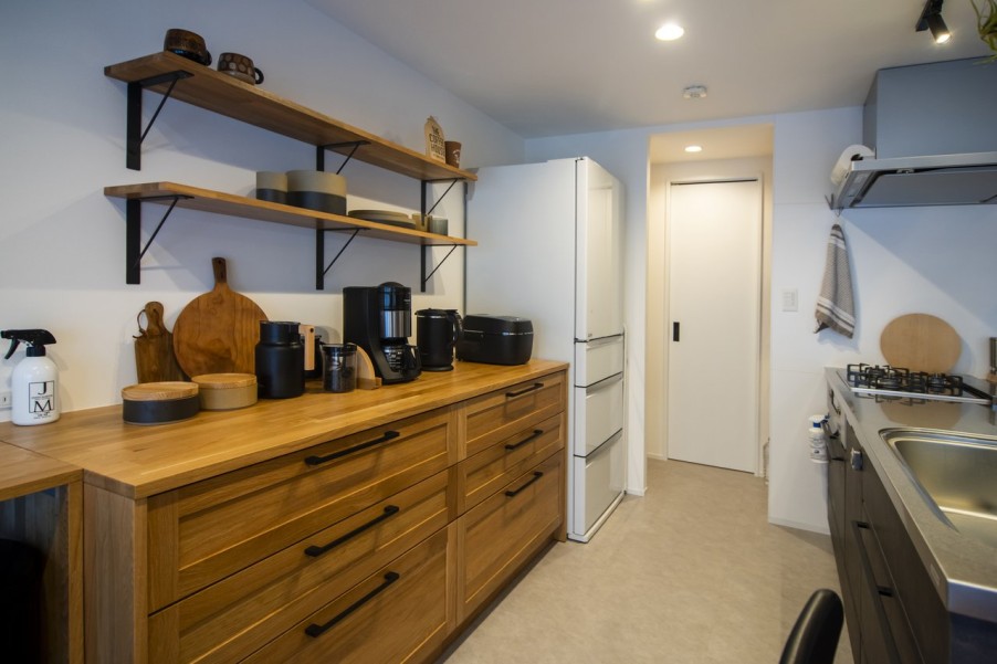 前にお住まいだった賃貸物件は、キッチンや洗面室、浴室などの水回りスペースが狭く収納も少なかったそうで、リノベーションではそれらのお悩みポイントの解決を目指しました。