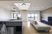 シンプルでありながら温かみのある、ジャパンディスタイルのお住まいが完成。吹き抜けから日の光が降り注ぐリビングダイニングは、家族団らんの場としてはもちろん、ご友人とのホームパーティー、おしゃれなキッチンスタジオとしても大活躍しそうです。人が集い、より一層明るく楽しい時間が流れていくことでしょう。