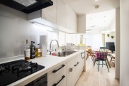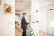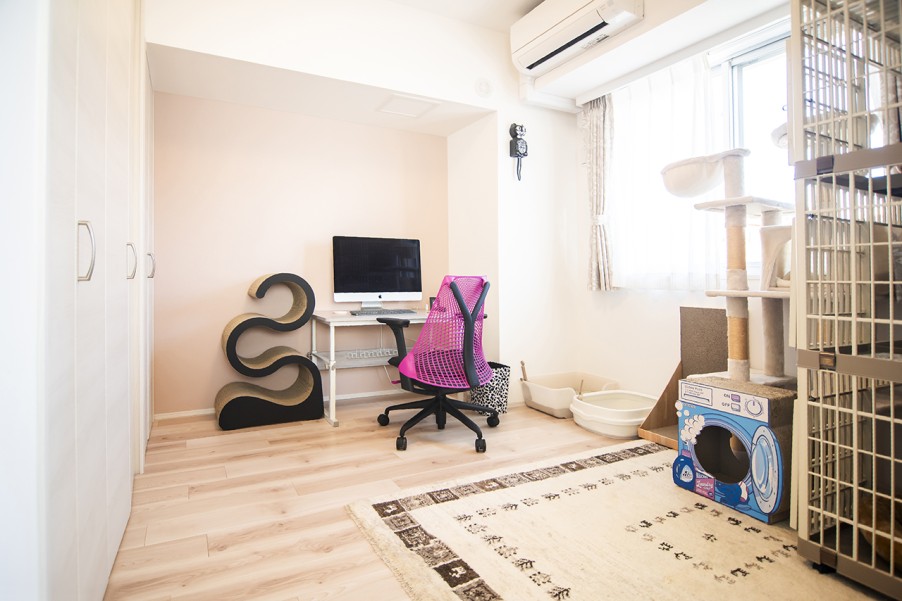 「前の家はキッチン収納が足りず、使っていない食洗機の中に食器を収納していたんです。今は上下にたっぷり収納があって、奥にもゴミ箱などを隠して置けるスペースがあり、すっきり見えて良いですね。調理スペースも広くなり、ちょっと危ないですが猫が飛び乗って遊んでいます。在宅勤務で使う仕事部屋は、アクセントクロスに好きなピンクを取り入れてもらいました。設計担当の方が、何も分からない私たちに色々と提案してくださり本当にありがたかったです。『それいいですね』みたいな感じで、私たちが提案に乗っかることが多かったです。結果的に自分たちの理想通りになり、オーダーリノベーションして良かったです。」(S様)