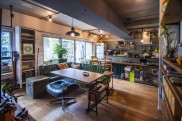 - 壁・天井クロス新規施工(一部壁ラーチ合板、一部天井躯体現し)