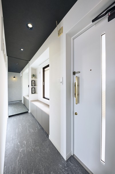 「玄関のミラーは、娘と一緒に使っています。着替えて出入りしたり、最後にベンチに座って靴を履いたりと、ファッションショーができる空間をイメージしています。ベンチはリビングのTVボードと同じデザインで造作してもらいました。小上がりの和室は、主人と息子が帰ってきたときのホテル部屋や、娘の友人が泊まりに来たときのゲストルームとしても使っています。主人のワークスペースとして使えるデスクカウンターも設置して、畳の下の収納には雛人形や賞状、トロフィーを、押し入れには客用の布団を収納しています。キッチンは、料理や洗い物をしながらダイニングテーブルにいる人と会話ができるので、便利で気に入っています。」(M様)