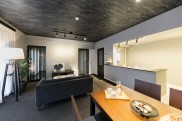 - 1回遊できる畳の部屋とリビングは、人がリビングに集まった時、とっても便利。お子様の遊びスペースにも、ご主人憩いのスペースにも何でも部屋に早変わりします和室を造りたいという希望から、旅館をイメージして室内をコーディネート。