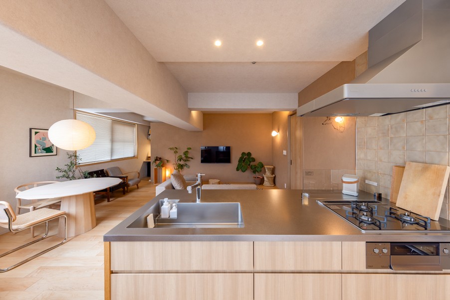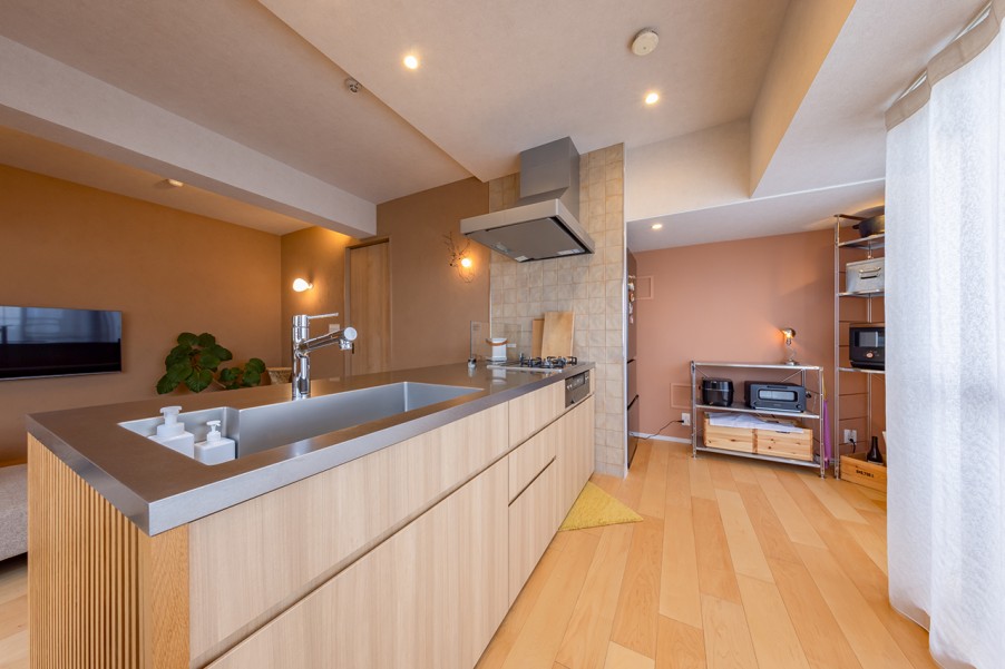 「新築ももちろん嬉しいと思いますが、ここは新築以上の魅力があり、より愛着が湧きますね。前の家では、狭いキッチンで壁に向かって料理をしていましたが、今は料理も掃除もしやすくなりました。友人を招いて一緒にお酒を飲んだり、ホームパーティーを開いたりする機会も増えて、みんなでゆったりと過ごせるのがとても良いですね。」(H様)