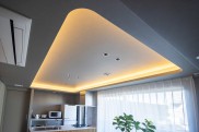 「Instagramでインテリアを見ているうちに、白一辺倒ではなく、グレーの壁や木を使った温かい雰囲気が好きだなと思ったんです。リビングの折り上げ天井は、曲線を描くことで柔らかい雰囲気をプラスしました。」(Hさま)