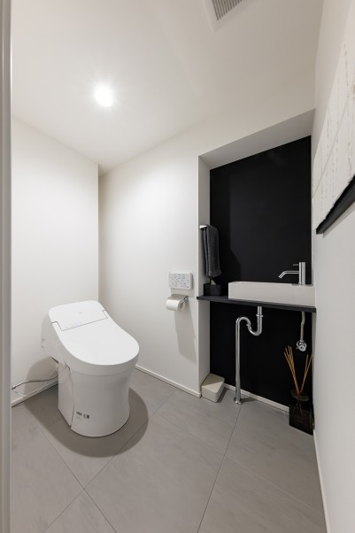 また、Nさまのご要望に合わせて、あえて自然素材を使わずにクールなテイストにしたことで、スタイリッシュで洗練された空間に仕上がりました。植物を取り入れたい際には、窓からの借景や観葉植物で、生きた自然を取り入れていただければと思います。
