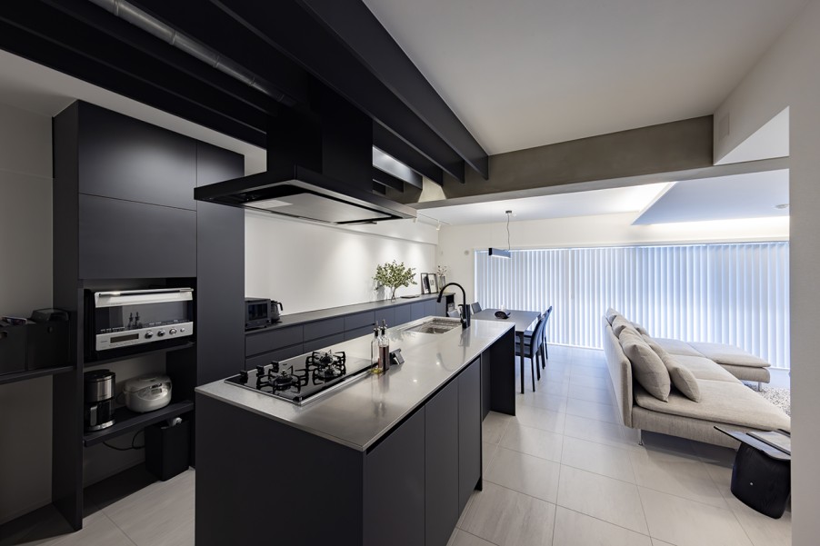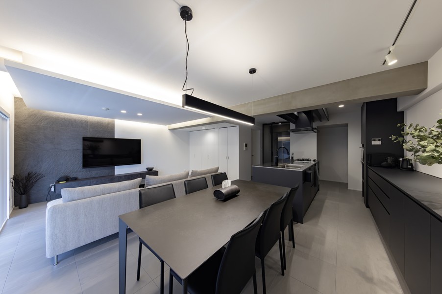 「二社とも現地調査に来てくださって、リノベーションで実現できること、できないことを確認してもらいました。仮プランを作っていただいた中で、マイリノは具体的な提案が豊富でした。他社で『できない』と言われたことにも解決策を提示してくれたので、マイリノにお願いすることを決めました。」(Nさま) - 2スタイリッシュモダンな広々LDKを実現