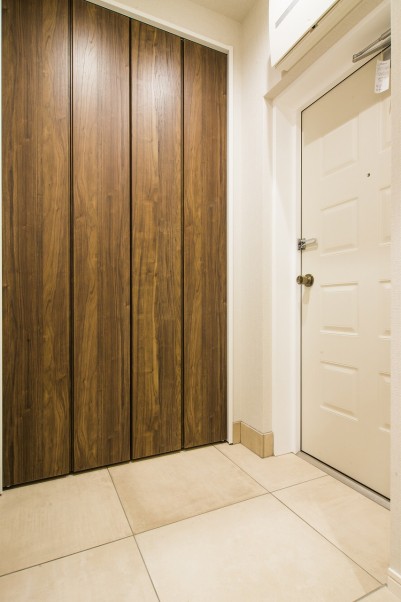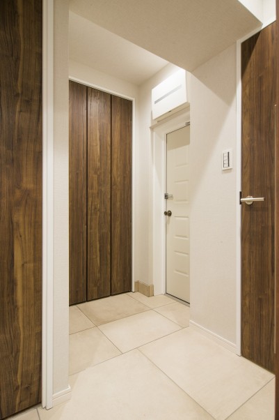 できる限りリビングを大きく取りつつ、壁を除いて計画しました。 - 2ヨーロッパのヴィンテージマンションを印象に床材を選定、採用玄関、ホール、トイレ、洗面所、そしてキッチンを全て同一色、種のタイルを採用しました。