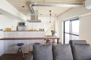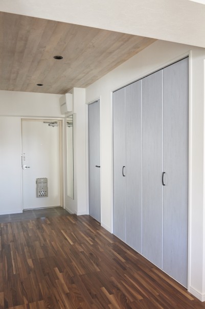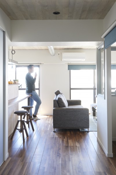 換気扇の排気ダクトを見せ、天井高を広くみせました。