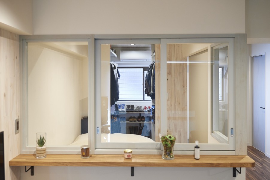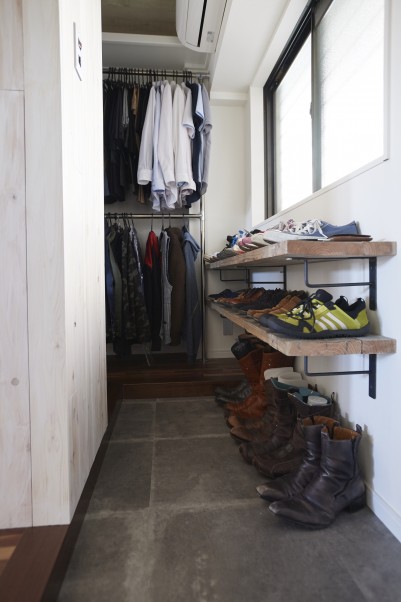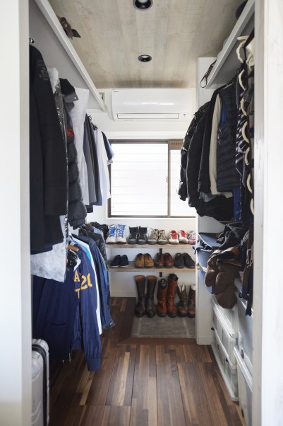- 2玄関と寝室をつなぐ、ウォークインクローゼット玄関横に土間を広くとったシューズクロークがあり、その先にウォークインクローゼット、寝室が続く、ウォークスルーのクローゼットを組み合わせ、動線に工夫しました。