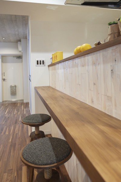 - 3お気に入りのカウンターキッチンシステムキッチンにプラスしたカウンターテーブルでは、食事をするだけでなく、コーヒーを飲んだり、お酒を愉しんだりするにも最適。