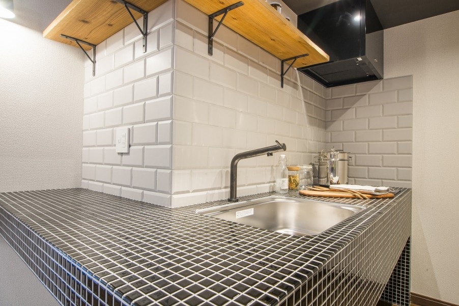 - 3こだわりのキッチンやタイルの色カタチたくさんあるタイルの色や形の中から、美しさやオリジナリティのあるものを選定しました。キッチン壁面のグレーのタイルで部屋にリズムを生みだします。