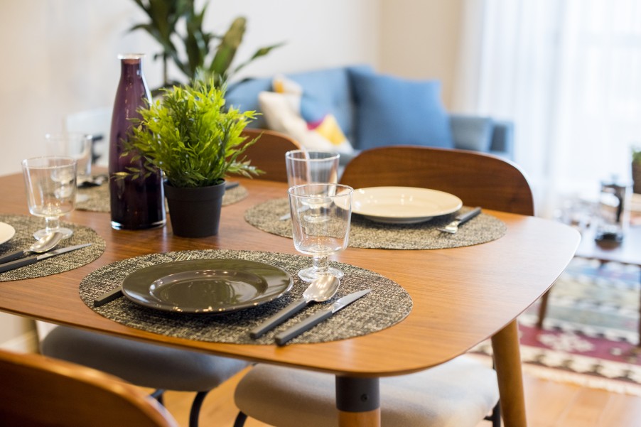 ダイニングとキッチンの間にある大きな柱型が空間を隔てており、現調時は邪魔な存在でしかなかったのですが、タイルを張りあえて存在感を出すことで部屋の顔となり良いアクセントにしました。