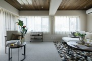 南青山に佇むリゾートのような住まいです。表参道から徒歩5分の都会にいながら、くつろぎのリゾートにいるようなゆったりとした空間を考えました。