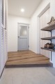 木製ブラインドを付けたり、収納庫のドアもルーバータイプにしたり、随所に奥様のアイデアを取り入れています。