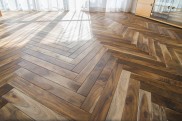 - ヘリンボーンの床にこだわった、ゴールドがアクセントの家