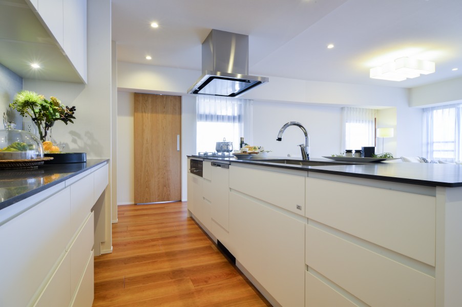 収納豊富なバックカウンターを備えており、使い勝手も良く、機能的。