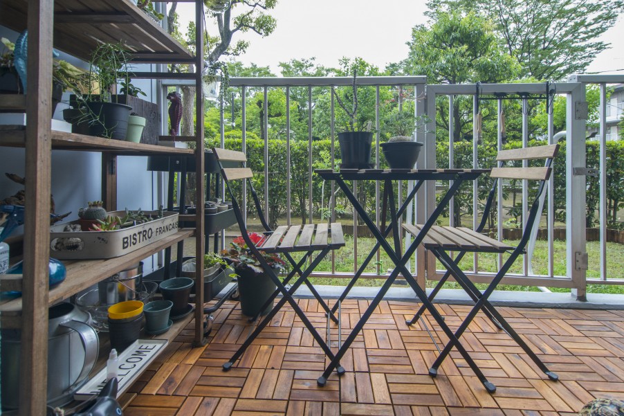 南西向きの1Fの物件にはお庭がついていて、「マーロン」をお散歩させることもできます。目の前は公園で陽当たりはバッチリ。広さや陽当りなどの条件は満たしていたので、あとは好みのインテリアにリノベーションするだけでした。