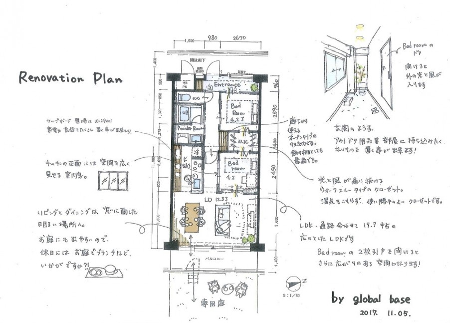 リノベ内容はとても気に入っていただけたようだが、部屋の広さと陽当りがネックで、契約には至りませんでした。