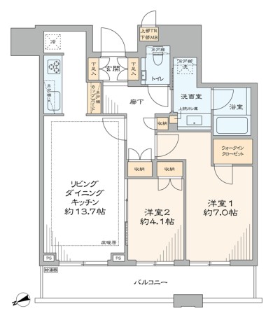 『目黒』駅徒歩3分 - 間取り : 2LDK+WIC