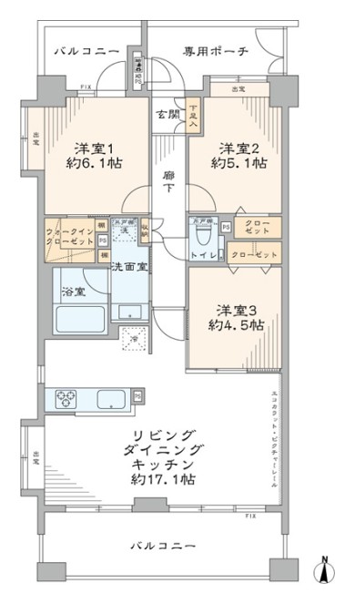 JR南武線『武蔵中原』駅徒歩10分 - 間取り : 3LDK+WIC